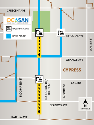 Work will take place during low-flow hours at night and include pipe inspection, cleaning, and grouting. Once complete, night work will move to the intersection of Denni St. and Lincoln Ave., moving south until Orange Ave.